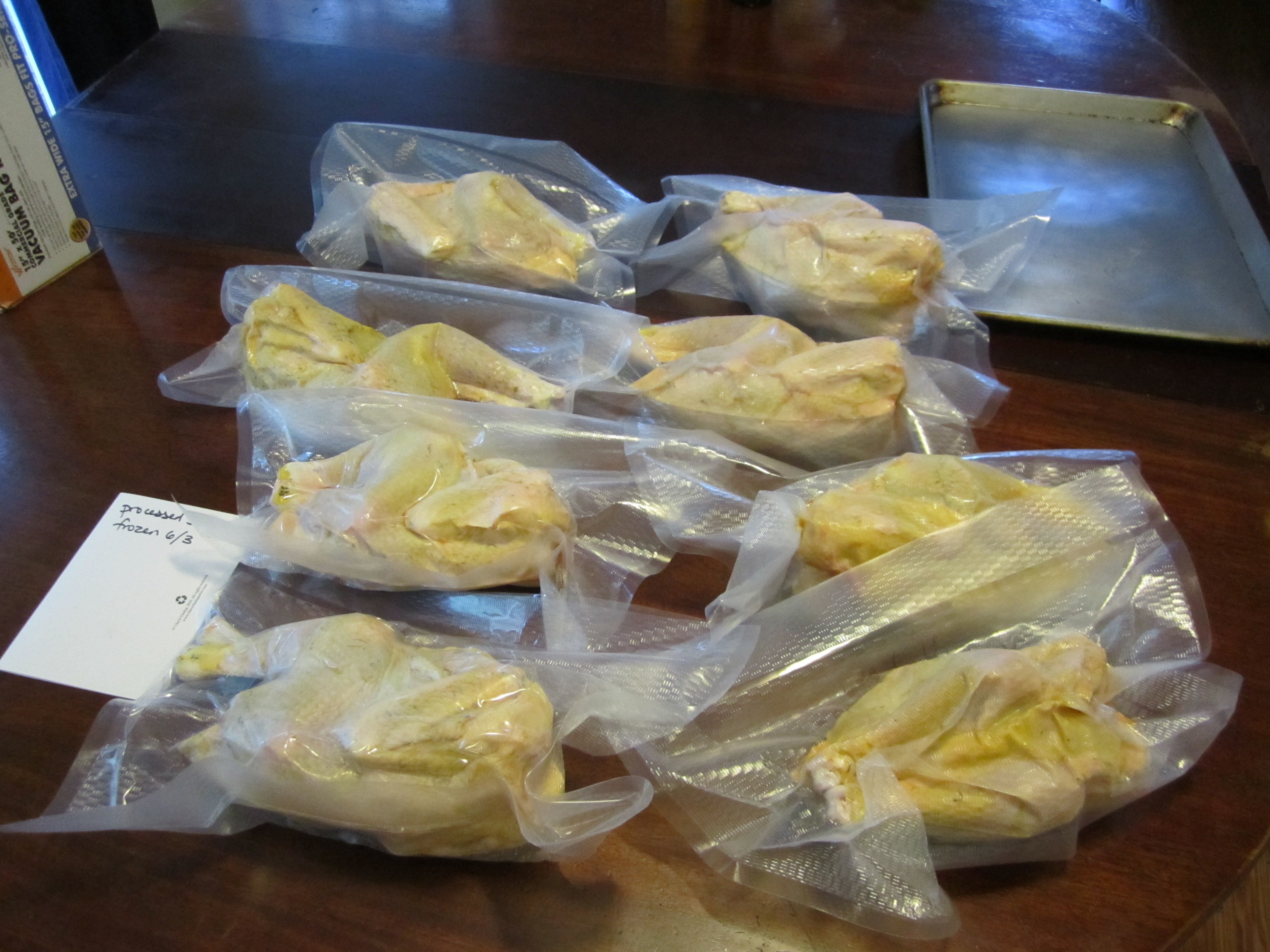 So, tonight, I blanched, cooled, cut off the kernels and froze all the “good enough” corn. It made three gallon-sized Ziploc bags worth. Rather flat bags. And the rejects are now two crates (shucked) of chicken food. I’m hoping the lambs will eat the husks – I’ll try that tomorrow.