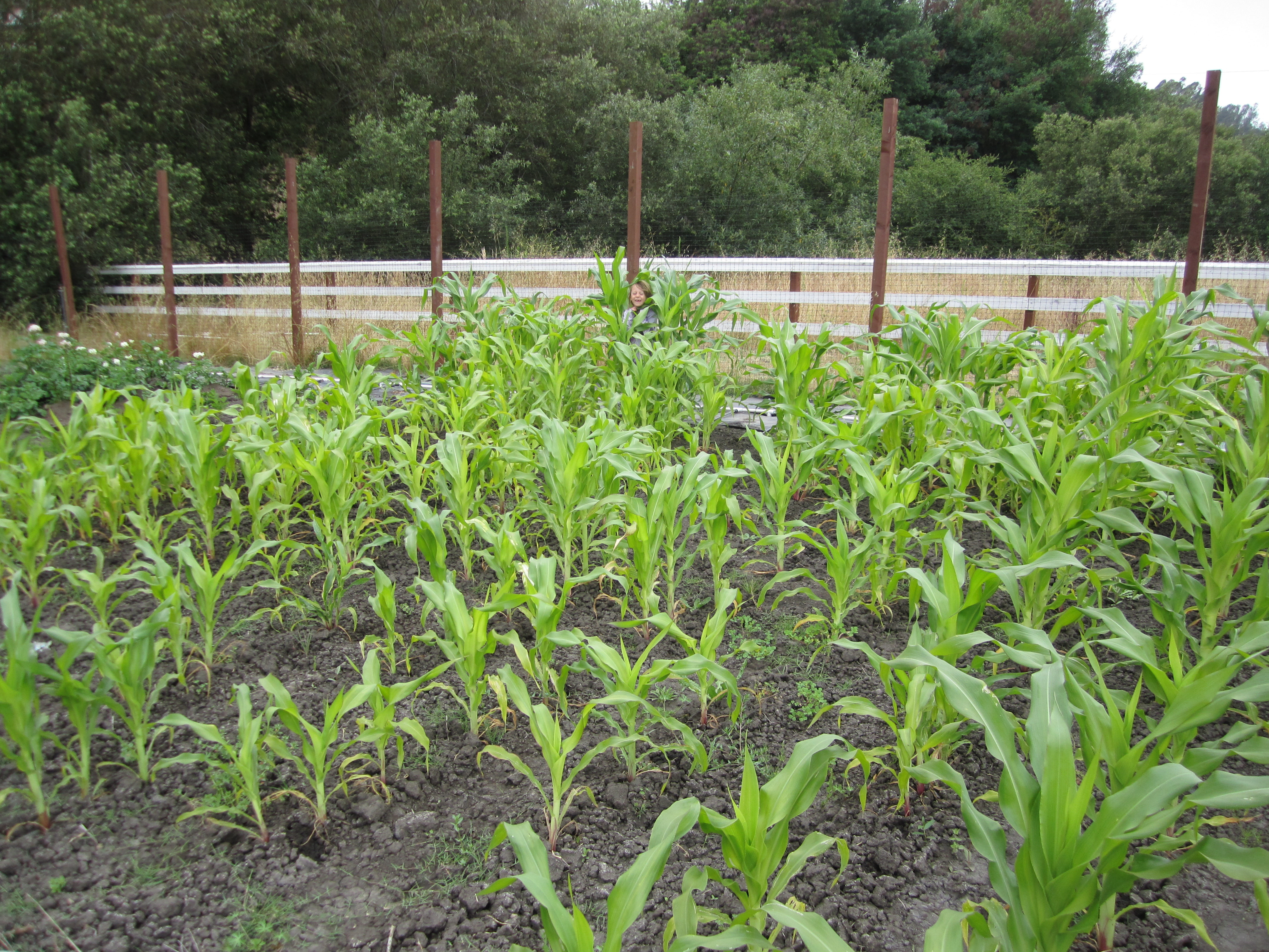 But instead of the wise old farmer, it was just dumb old us. And we have no idea what we’re doing. I picked what sounded like a good type of corn, white and sweet, and planted it. We have no clue about dry farming; we watered our corn. It came up, looking promising.